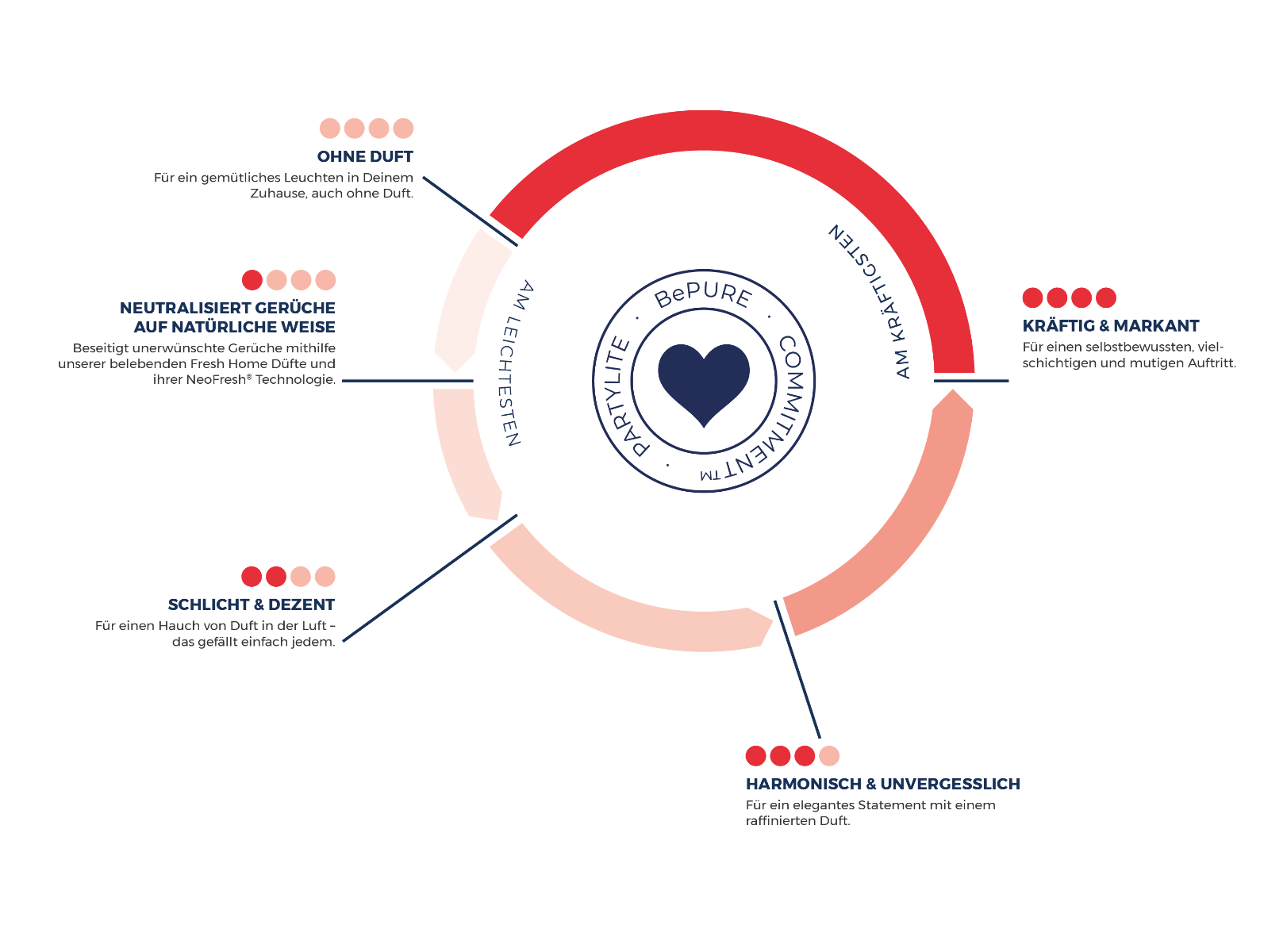 Hast du dich gefragt, wie dezent oder kräftig unsere Düfte sind und welche Intensität am besten zu deinem Zuhause passt? Unser Duftintensitäts-Rad hilft dir, für jede Gelegenheit das Passende zu finden.